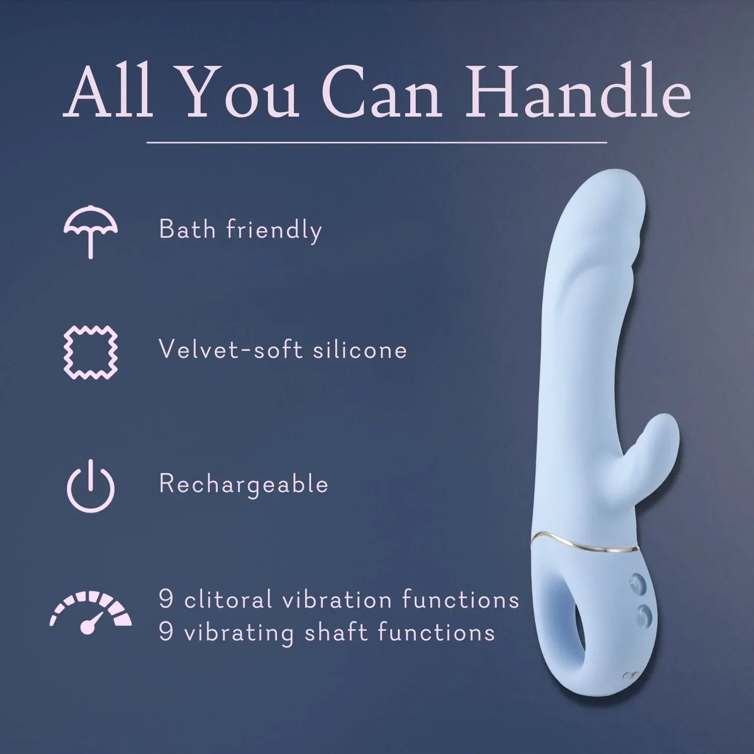 Like a rumble deep below the surface, this dual-action vibrator is sure to rock every boat. Featuring a looped grip and two independently controlled motors, the shaft’s rippled curve comes in like the tide while the wave-textured clitoral stimulator provides a rush of pleasure that will leave you wanting more.