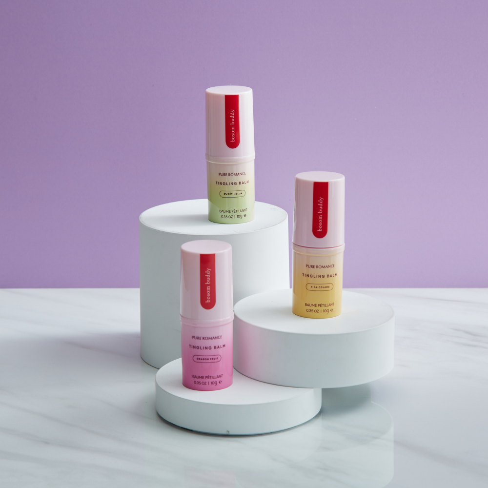 Add sensation and a little flavor to your fun tonight. Bosom Buddy flavor-infused balm creates a pleasurable tingling for you, and a silky and kissable surface for your partner. Moisturizing ingredients and mouthwatering flavors make Bosom Buddy perfect for your skin and your taste buds.