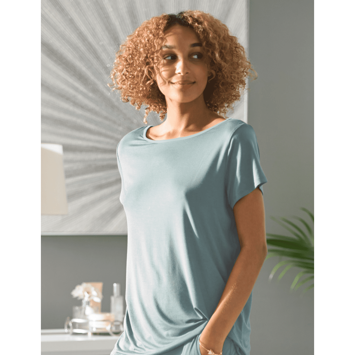 Comfort is sexy, especially in the Euforia Leto Cutout tee. This luxurious blend of bamboo fibers drapes easily over curves. The spun fibers are silky to the touch and wick away moisture, leaving you blissfully comfortable and confident. The low-key style comes in a variety of sizes and offers peeks of skin through the seductive plunging back and criss-cross straps for small touches of subtle sexiness. Pairs well with Sunday mornings, satisfied desires, and the Leto Lounge Pants.