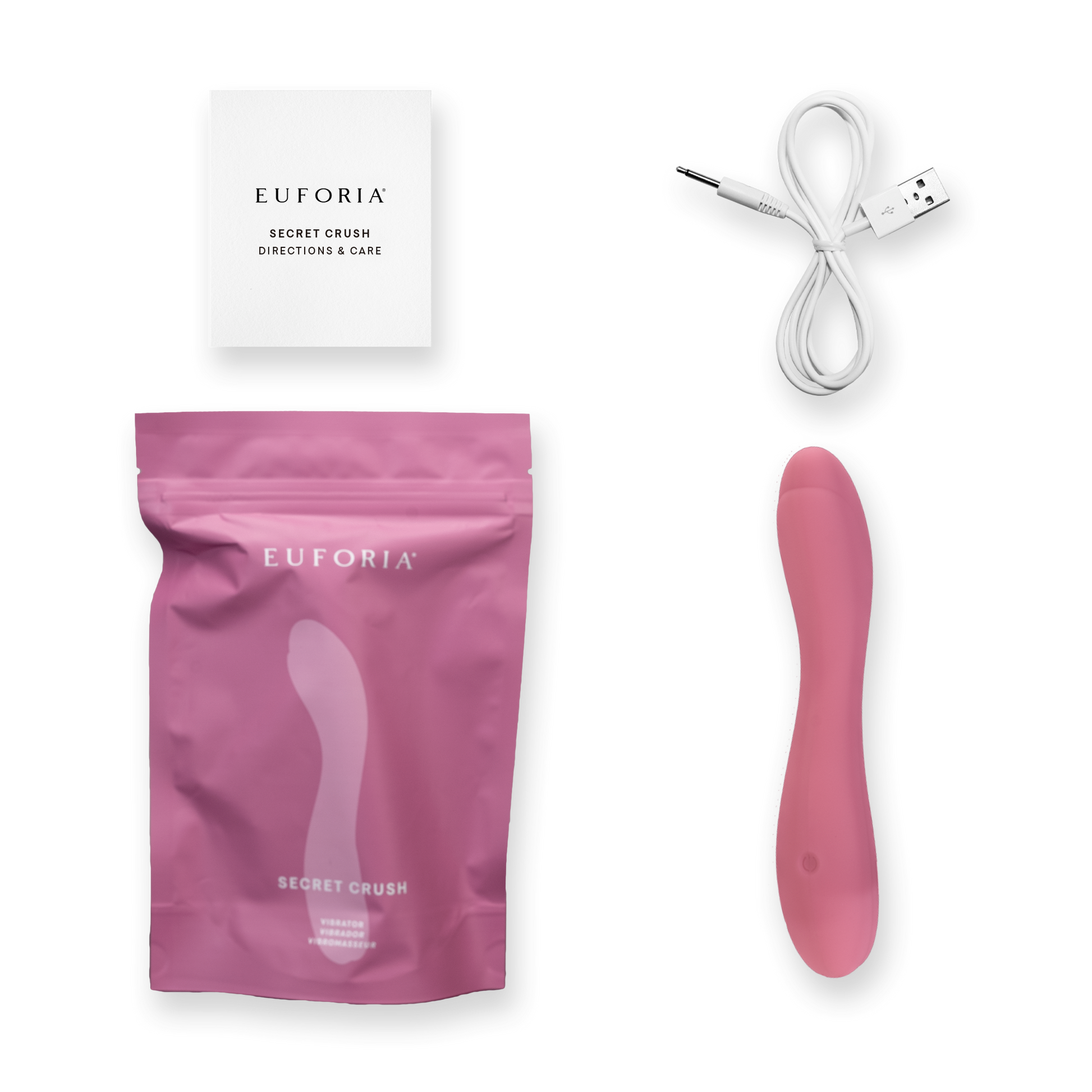 This silky-smooth vaginal vibrator is irresistible to the touch and features a Full Silicone design, making it ultra flexible. Secret Crush’s gentle curves make it ideal for G-spot stimulation while its three speeds and five rhythmic patterns of powerful vibration will leave a lasting impression that will have this vibe living in your mind rent free for days.