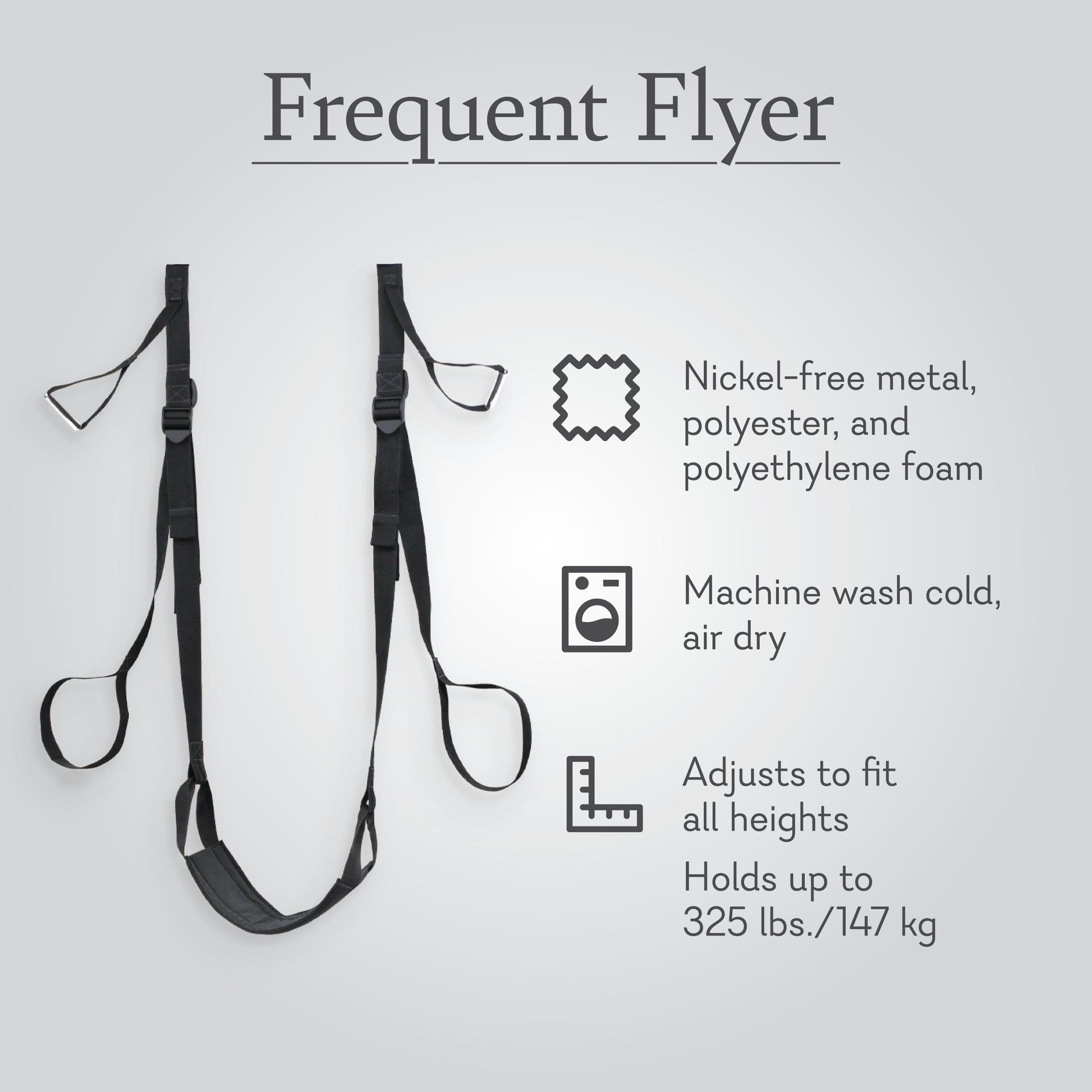 Upgrade your intimate adventures with the Frequent Flyer Door Swing, a versatile position aid designed to help you move in ways you never imagined, try a variety of different, thrilling positions and experience deeper connection. Whether you're looking to elevate your bedroom play or spice up a getaway, this quick to toss up and take down swing lets you explore new positions with ease and comfort.
