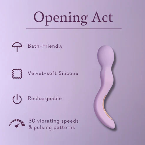 Opening Act is contoured for your pleasure with 30 spellbinding vibrations and pulsing patterns. Ergonomically designed, this silicone wand vibrator is designed to stimulate the clitoris, or it can be used internally. You can also dance it down your every curve for a thrilling full-body massage. Try it in the bedroom or the bath and play any way you wish.