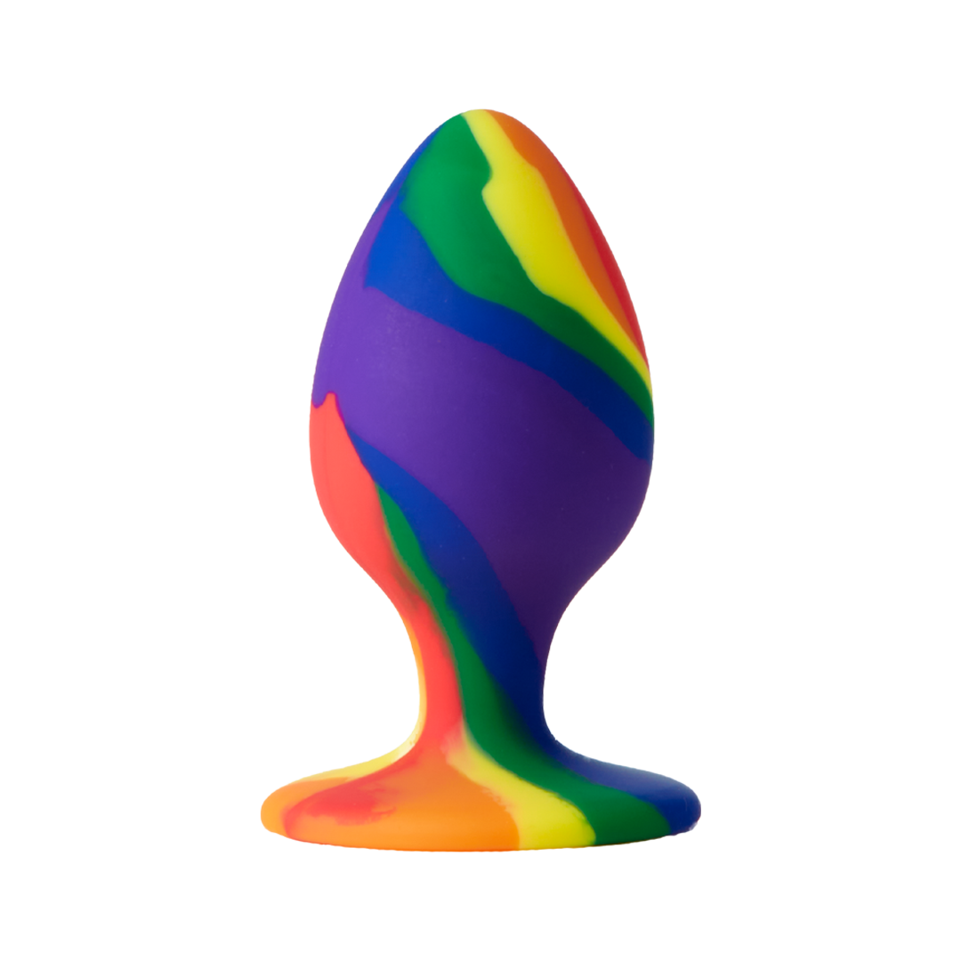 How about a pleasure that is truly unique? Each of our Over The Rainbow plugs features a multi-colored design that is one-of-a-kind – just like you. The large, tapered shape is made of soft and flexible silicone so it’s comfortable to insert and easy to use. The flanged base allows for easy removal and doubles as a suction cup for hands-free play. Over The Rainbow plays best with Booty Eaze Comfort Gel and Pure Pleasure silicone-based lubricant to prep for fun and maximize sensation.