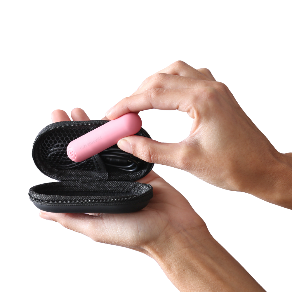 Staycay or vacay, this vibe and case combo is sure to be the star of your intimate collection. Discreet black and compact, the included case fits into your favorite bag or carry-on so your private show stays private. Plus, the mesh pocket is perfect for holding the charge cord, so you have everything you need on the go. To enjoy, add a dab of lubricant to the silicone-coated bullet for powerful vibration right where you want it, then store it in the case when you're done!